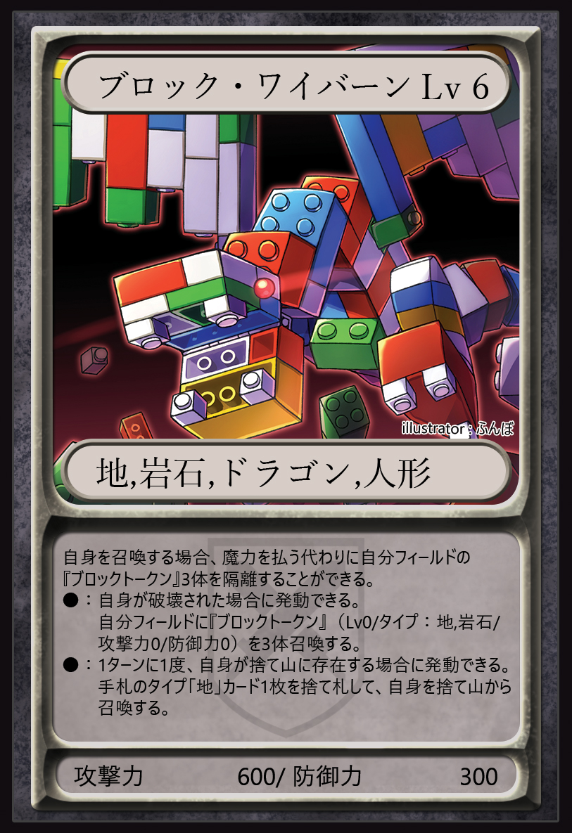破壊された時にトークンを召喚する「誘発能力」、手札を捨てることで捨て山から召喚できる「起動能力」を持つ。