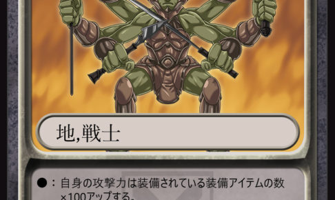 CUU00052 【ユニット情報】 あらゆる武器を使いこなす戦士。 その6本の腕による多彩な武器を使っての連続攻撃は強力だ。 【カード解説】 自身に装備されている装備アイテムの数だけ攻撃力がアップする「常在能力」を持つ。…
