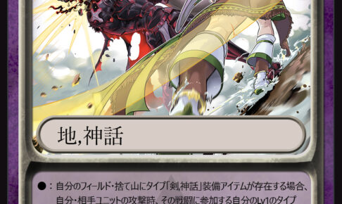 CUS00276 【スペル情報】 アイリスが放った渾身の斬撃が、黒騎士の兜を砕く。 【カード解説】 条件を満たすことで1回の戦闘だけレベル1のタイプ「地,戦士」ユニットのステータスを800もアップする通常スペル。 また、…